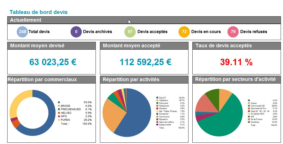 Afin de vous permettre de visualiser les indicateurs essentiels au suivi de votre activité, nous vous proposons un ensemble de tableaux de bord définis par défaut ainsi que la possibilité de les personnaliser selon vos besoins.