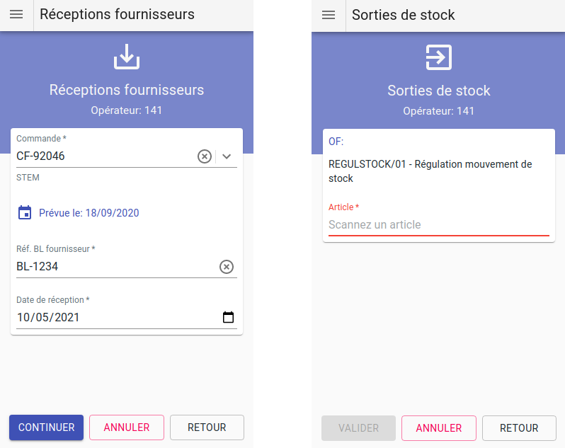 - entrée et sortie de stock pour la production